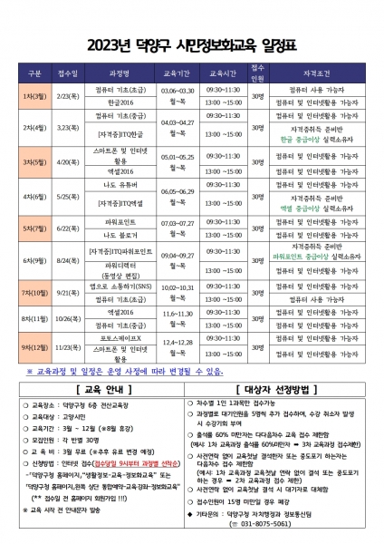 [금요저널] 고양특례시 덕양구는 오는 3월부터 ‘2023년 시민정보화 교육’을 실시한다.