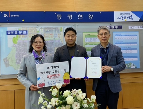 김영구 정왕1동장은 “모두가 힘든 시기에 소외계층을 위한 후원금을 기탁해주신 ㈜디아이의 따뜻한 나눔 실천에 깊이 감사드린다”며 “후원금을 지역 내 복지 사각지대에 있는 어려운 이웃을 돕는 데 소중히 사용하겠다”고 전했다.