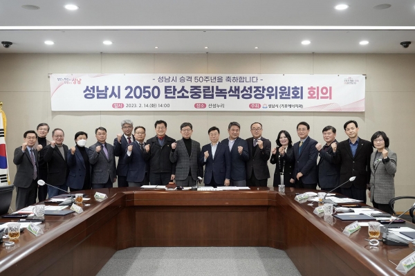 시는 2월 14일 시청 산성누리에서 이런 내용을 포함하는 ‘성남시 2050 탄소중립 녹색성장위원회’ 회의를 개최하고 관계 공무원과 외부 전문가 14명을 위원으로 위촉했다.