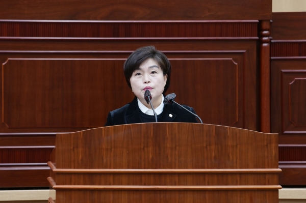 김미경 부의장은 14일 제1차 본회의에서 연천군 발전도모를 위한 군유휴부지 확보와 청산면 공동묘지 개발 촉구를 위한 제언을 주제로 발언했다.