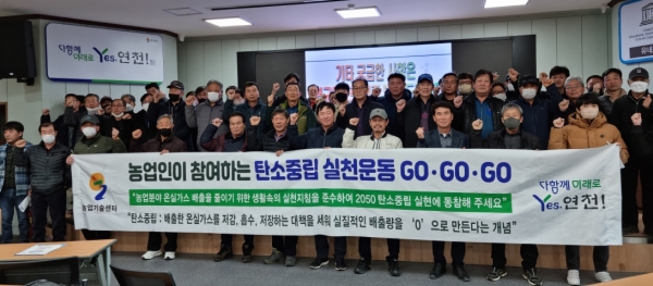 연천군농업기술센터는 농업분야 탄소배출 문제점 및 감축 필요성에 대해 공감대를 형성하고자 실천가능한 탄소저감 실천방안 교육을 실시하고 있다.