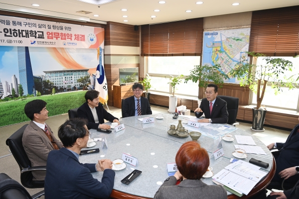 [금요저널] 연수구는 지난 17일 구청 소회의실에서 지속 가능한 관·학 협력을 통해 구민의 삶의 질 향상을 목적으로 인하대학교와 업무협약을 체결했다.