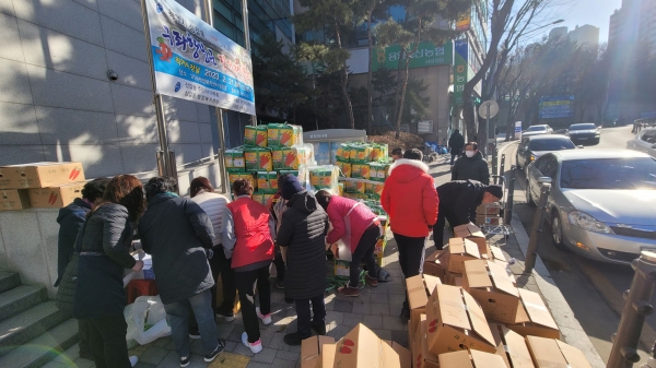 [금요저널] 용인특례시 기흥구 상갈동은 21일 주민자치위원회가 동 행정복지센터 앞에서 제주시 구좌읍 향당근 직거래장터를 열었다고 밝혔다.