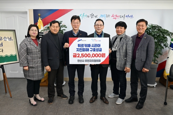 [금요저널] 안산시는 안산시주민자치협의회에서 지진으로 어려움을 겪고 있는 튀르키예와 시리아 국민들을 위해 성금 250만원을 기탁했다고 22일 밝혔다.