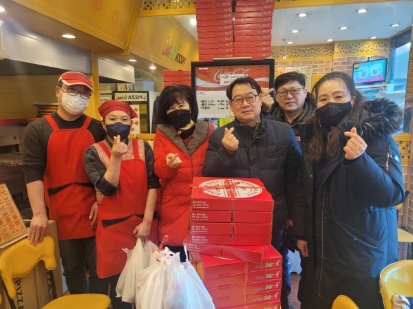 피자스쿨 중산점과 노랑통닭 중산점은 2021년부터 관내 저소득 가구 중 음식 조리가 어려운 홀몸 어르신뿐만 아니라 성장기에 있는 아동 및 청소년에게 후원을 지속해오고 있다.