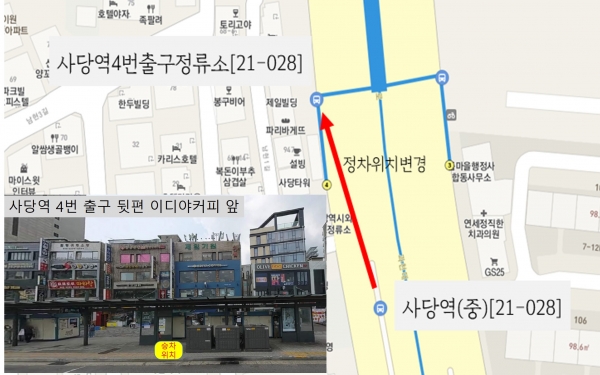3301번 광역버스, 사당역 정류소→4번 출구) 변경.