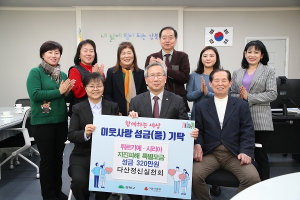 [금요저널] 서울 강북구는 민주평화통일자문회의 서울강북구협의회 및 다산정신 실천회가 지난 21일 튀르기예·시리아 지진피해 복구를 위해 성금 625만원을 기탁했다고 밝혔다.