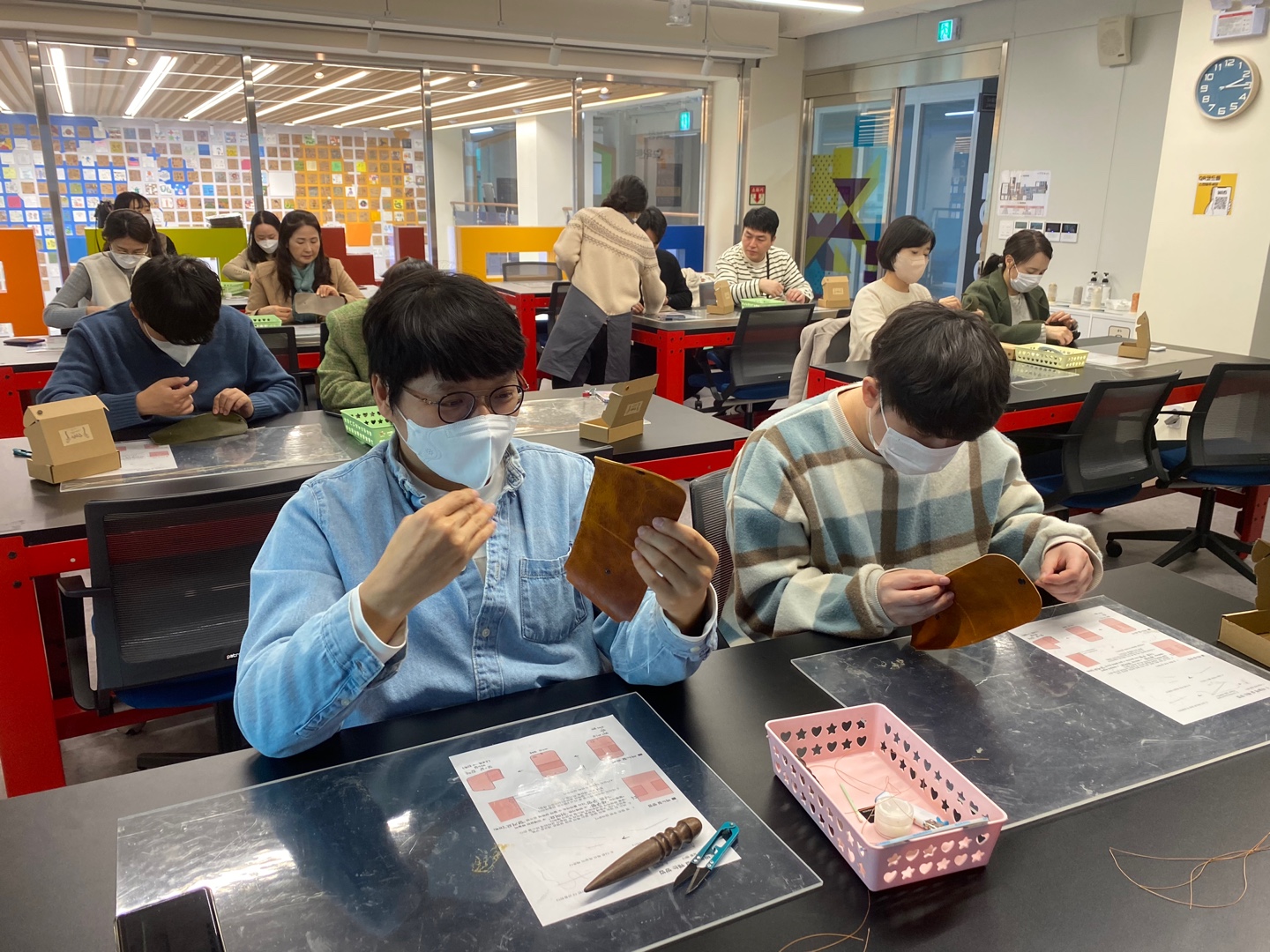 □ 또한 오후에는 남부미래교육관에서 경산수학체험센터 프로그램 및 남부메이커교육센터에서 가죽공예 체험을 하여 장애학생을 위한 진로 프로그램과 연계하는 시간을 가졌다.