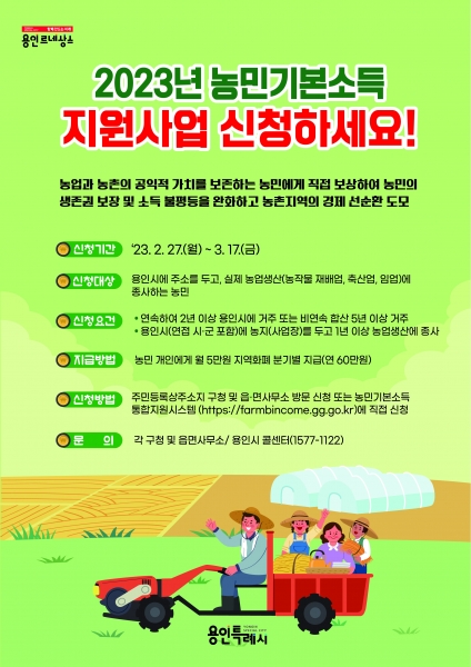 용인특례시, “농민기본소득 신청하세요”