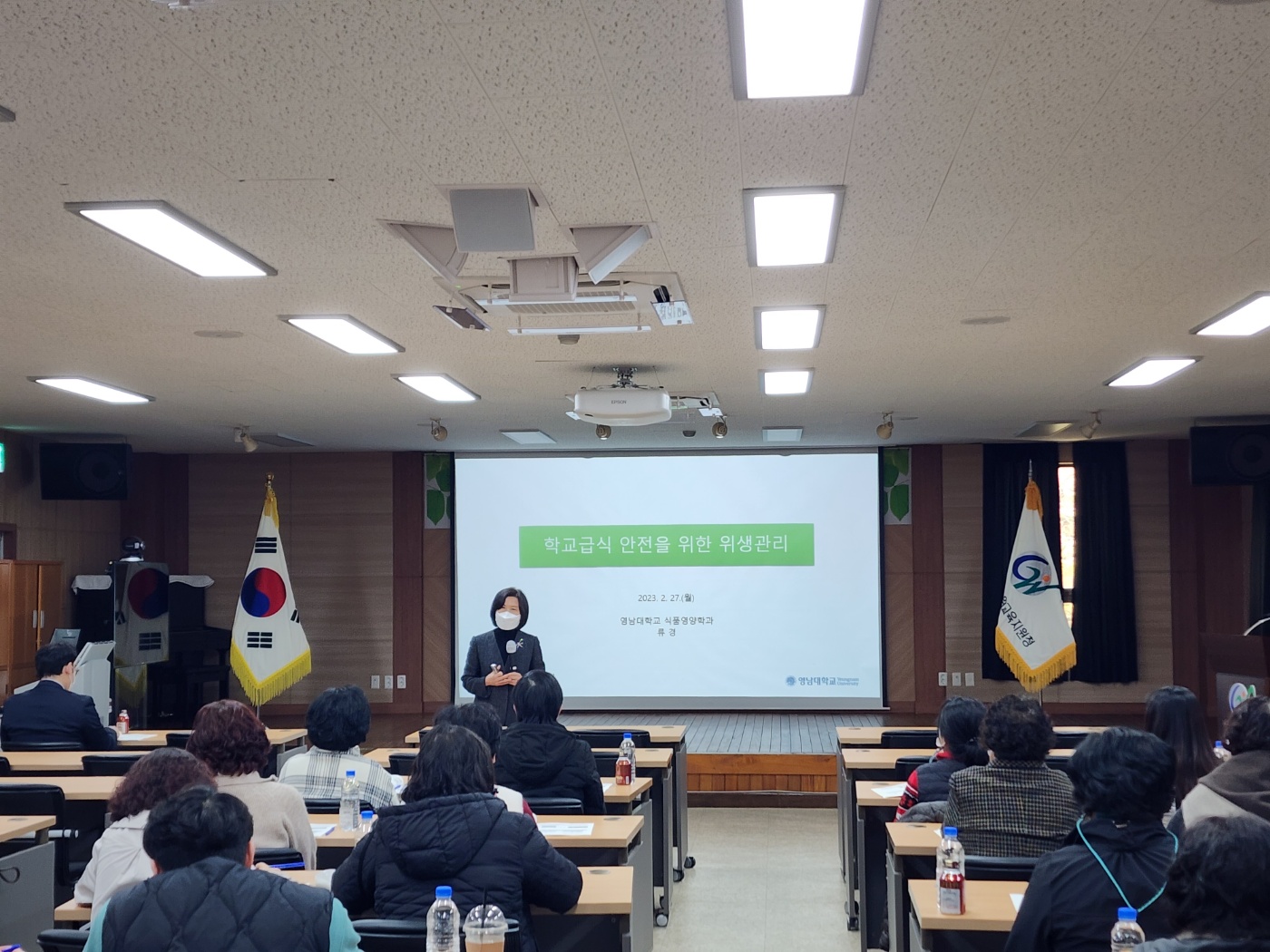 이번 교육은 학교급식 조리종사자와 학교급식점검단의 위생·안전 관리 능력 향상을 통해 개학철 식중독을 예방하고 근무중 일어날 수 있는 전기․화재 사고 위험성을 사전에 인식하고 스스로를 보호하기 위해 영남대학교 식품영양학과 류경 교수님과 경상북도교육청 박찬병 안전관리자를 강사로 초빙하여 학교급식 현장 사례 중심의 맞춤형 교육을 실시하였으며, 학교급식 분야 청렴교육으로 마무리하였다.