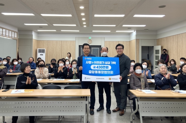 이상기 중앙동장은 “매년 나눔 문화에 적극 동참해주시는 통장님들께 깊은 감사를 드린다”며 “전달해주신 성금은 주민들에게 큰 희망이 될 것”이라고 말했다.