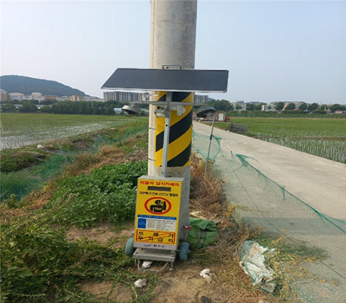 이동식 CCTV는 현장 실정에 따라 이동 설치가 쉽고 동작 감지를 통한 불법투기 경고 방송 및 야간 조명 기능이 있어 쓰레기 무단투기 예방효과가 탁월하다.