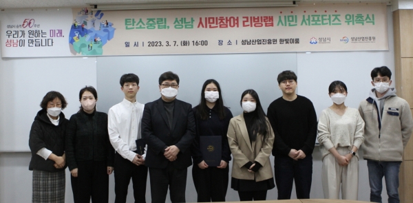 [금요저널] 성남산업진흥원은 ‘[성남시 승격 50주년] 탄소중립 성남 시민참여 리빙랩’의 홍보와 안내를 담당할 ‘시민 서포터즈’ 위촉식을 개최했다고 8일 밝혔다.