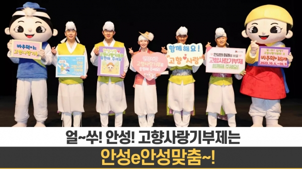 특히 남사당 풍물단은 ‘얼~쑤 안성 고향사랑기부제는 안성e안성맞춤’ 이라는 슬로건으로 고향사랑기부제 홍보와 캠페인에 참여하며 영상을 제작해 유튜브로 홍보하고 있다.