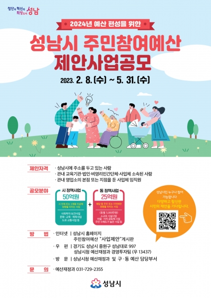 [금요저널] 성남시는 내년도 예산 편성을 위해 오는 5월 31일까지 ‘주민참여예산 제안사업’을 공모한다.