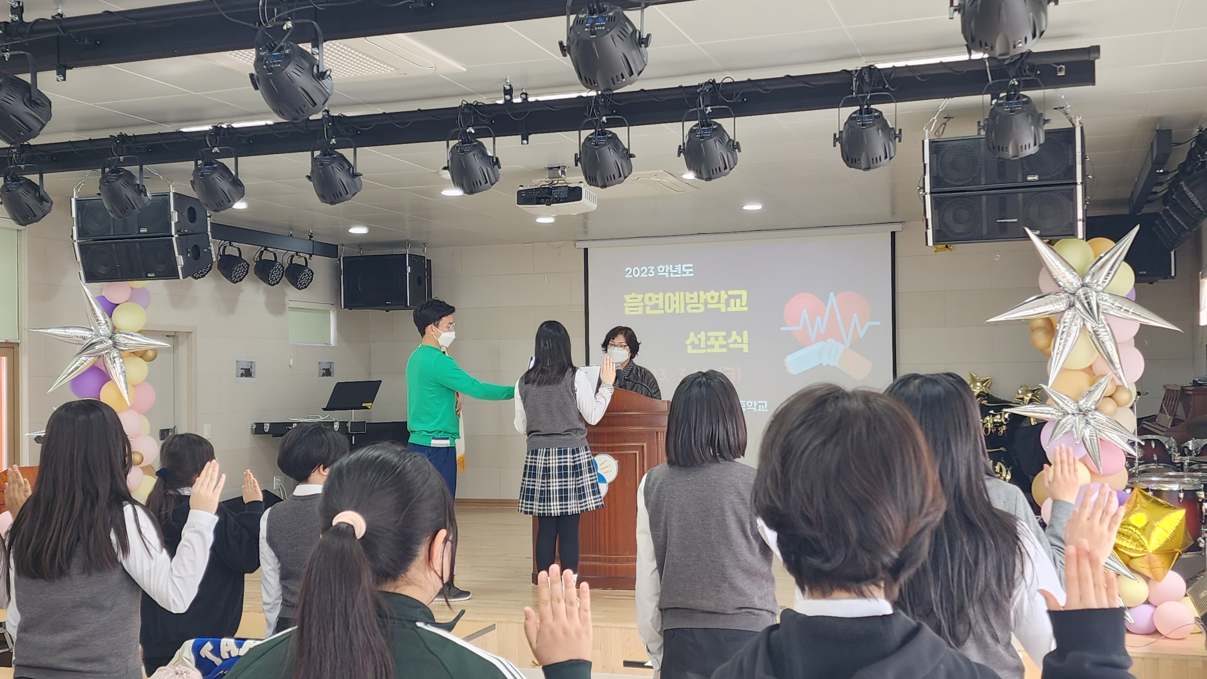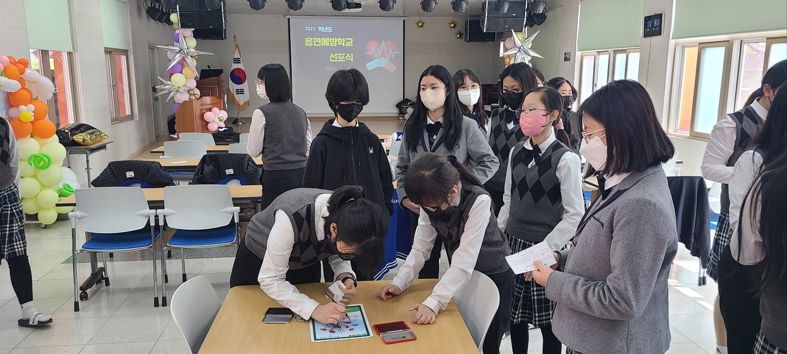 금연선포식은 전교생이 한자리에 모여 흡연에 대한 문제와 거절 방법들을 교육하고 평생금연을 약속하는 지문나무 만들기, 금연교육 시간을 통해 흡연 청정구역임을 선포하였다.