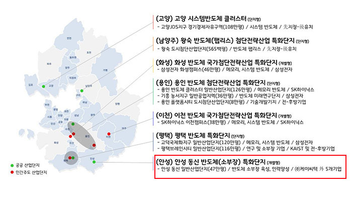 주요 계획을 살펴보면 안성시·남양주시·고양시는 기존 산업단지와 계획 중인 산업단지를 특화단지로 지정해 이를 토대로 반도체산업을 육성하겠다는 계획을 수립했다.