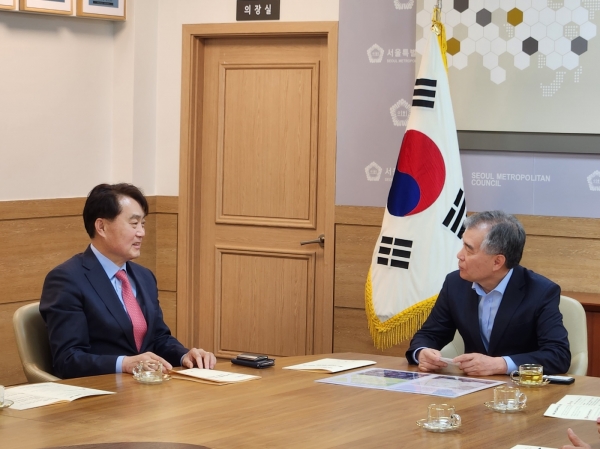 [금요저널] 하은호 군포시장은 10일 김현기 서울시의회 의장을 만나 산본에 있는 서울시남부기술교육원 부지 인수를 도와달라고 요청했다.