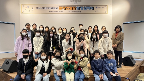 [금요저널] 시흥시는 지난 11일 시흥시와 서울대 음악대학이 함께하는 교육프로그램 ‘음악멘토링’의 2023년 입학식을 ABC행복학습타운 가치관 다목적홀에서 개최했다.