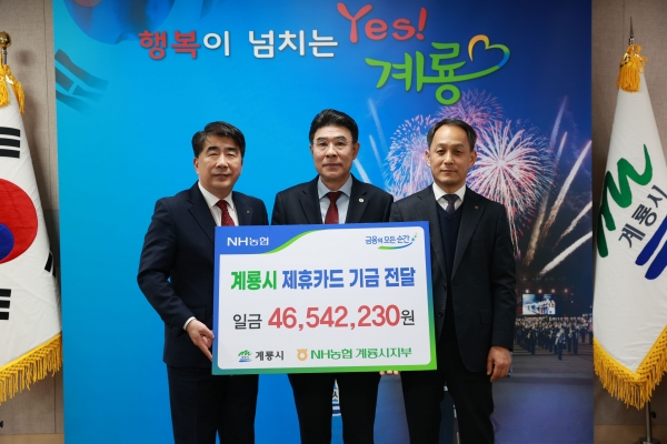 [금요저널] 계룡시는 지난 9일 NH농협은행 충남본부, 계룡시 지부와 ‘NH 제휴카드 기금 전달식’을 가졌다고 밝혔다.