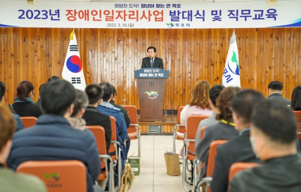 [금요저널] 목포시가 2023년 장애인일자리 참여자 발대식을 갖고 장애인일자리 사업을 본격 추진한다.