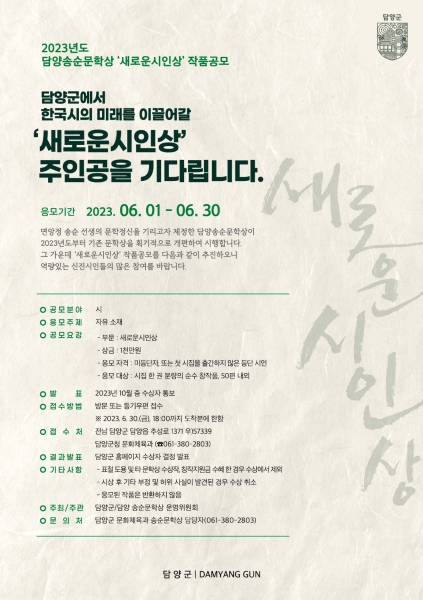 담양군, “한국시의 미래를 이끌어갈 ‘새로운시인상’ 주인공을 기다립니다”