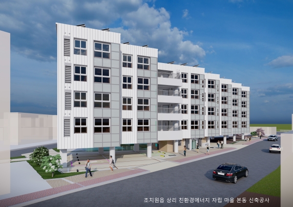 도시재생 뉴딜사업으로 추진된 국민임대주택은 에너지 효율을 높이는 고성능 건축자재와 인공지능 주거 서비스 기술이 적용된 에너지 마을이다1,931㎡의 대지에 본동 지상 5층 26세대, 부동 지상 3층 5세대 규모로 건립했다.