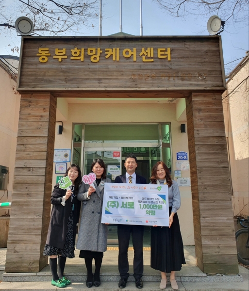 [금요저널] 주식회사 서로는 지난 10일 남양주시 수동면 지역의 공동 육아 돌봄교실의 아동들을 위한 교육·문화 활동비로 동부희망케어센터에 1,000만원을 후원할 것을 약속했다.