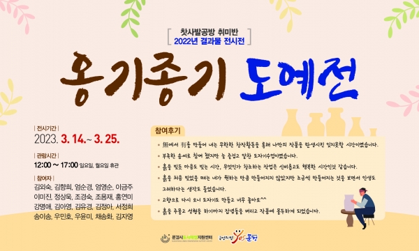 [금요저널] 문경시와 도시재생지원센터는 찻사발공방-갤러리 문경에서 봄맞이 기획전시‘多視 : 봄’에 이어 3월 14일부터 25일까지 2주간 ‘옹기종기 도예전’을 개최한다.