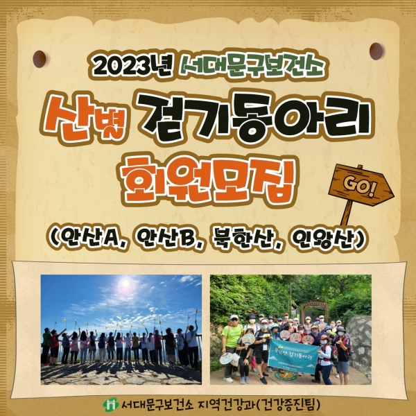 [금요저널] 서대문구가 주민 건강 증진을 위해 ‘산 걷기 동아리’ 회원을 모집하고 다음 달부터 관내 안산 2곳, 북한산과 인왕산 각 1곳에서 걷기 프로그램을 진행한다.