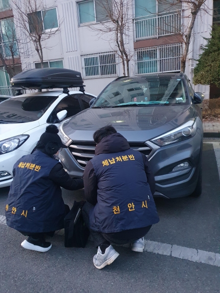 [금요저널] 천안시는 지난 14일 새벽 꽃샘추위와 싸우며 자동차세와 차량 관련 과태료를 상습 체납한 차량에 대한 일제 단속을 실시했다.