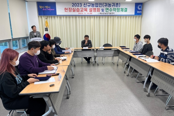 [금요저널] 화순군은 지난 14일 농업기술센터에서 2023 현장실습교육 사전설명회 및 연수 약정 체결식을 진행했다.