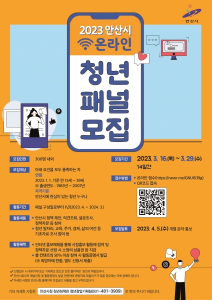 안산시“청년 의견 정책에 반영”온라인 청년 패널 모집