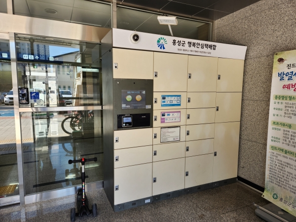 [금요저널] 홍성군은 1인 가구의 택배 수령 불편을 해소하고 택배기사 사칭 범죄 예방을 위해 운영하는 행복안심 무인택배함 3개소를 운영하고 있다.