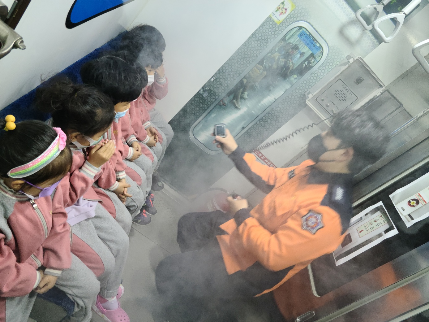 지하철에서 지진이 일어났을 때 대피요령을 알고 난 후 지진 체험으로 책상밑에 숨어서 머리에 모자를 써서 보호한 후 지진이 멈추고 나서 차례차례 지하철을 나오는 체험을 하였다. 그리고 지하철 화재에서는 레버를 돌려 문을 열고 입을 막고 몸을 낮추어 장애물을 피하여 지하철 밖으로 탈출하는 체험을 하였다.