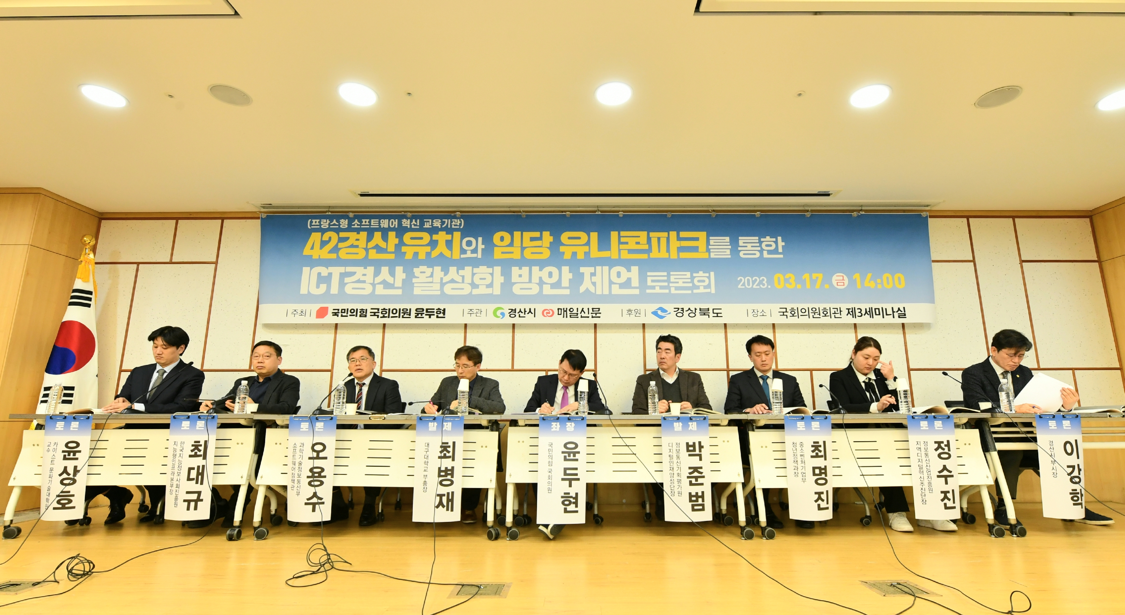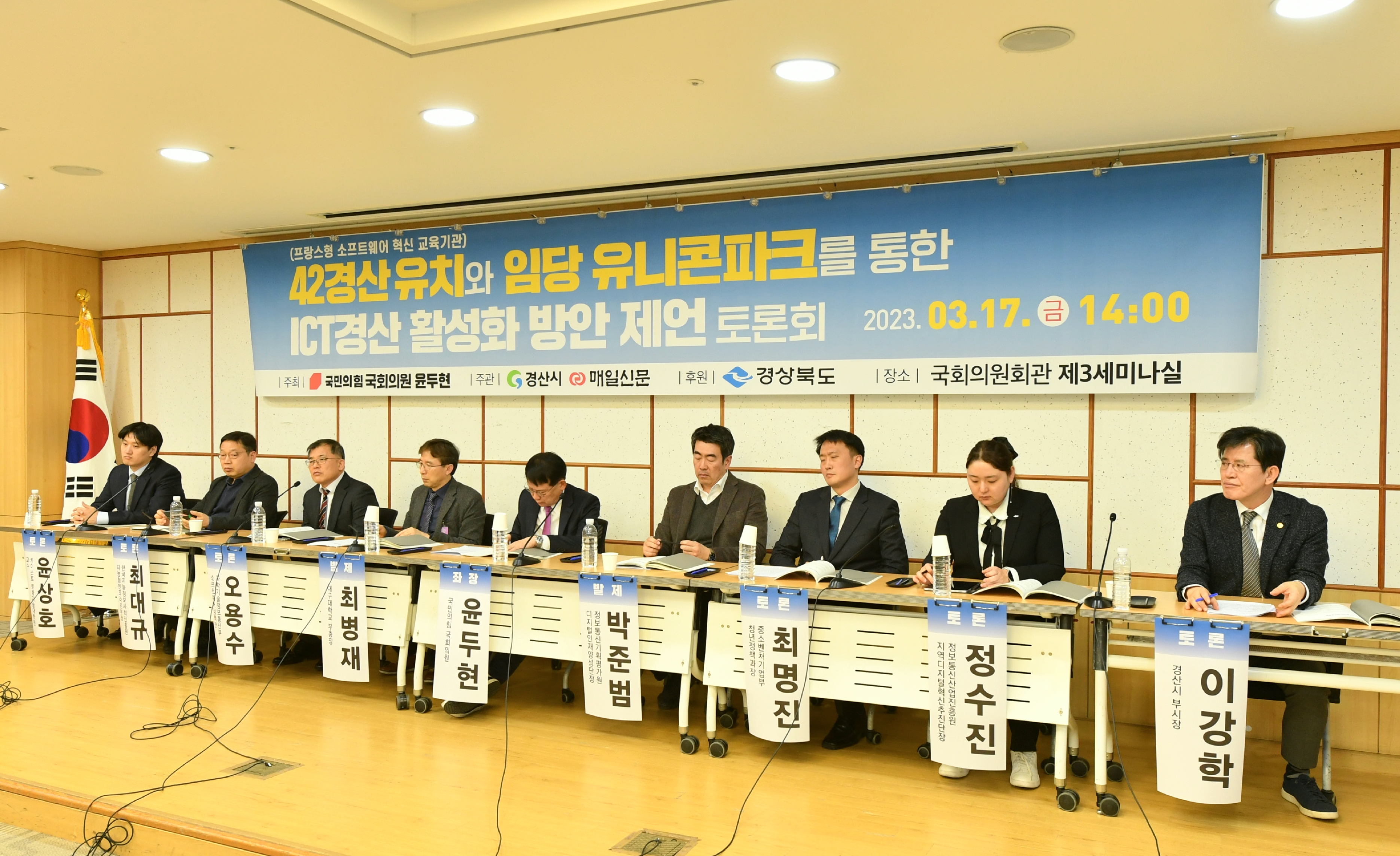이번 토론회는 윤두현 국회의원의 강한 추진력으로 확보한 사업인‘42경산’과 ‘임당 유니콘 파크’를 연계해 ICT 경산 활성화 방안을 모색하여 4차산업혁명과 디지털 대전환 시대에 적극 대응하기 위해 개최됐다.