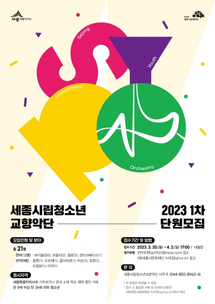 [금요저널] 세종시립청소년교향악단이 전문적인 예술교육으로 지역예술을 선도하는 예술단으로 함께 성장할 참신하고 실력 있는 신규단원을 20일부터 4월 2일까지 모집한다.