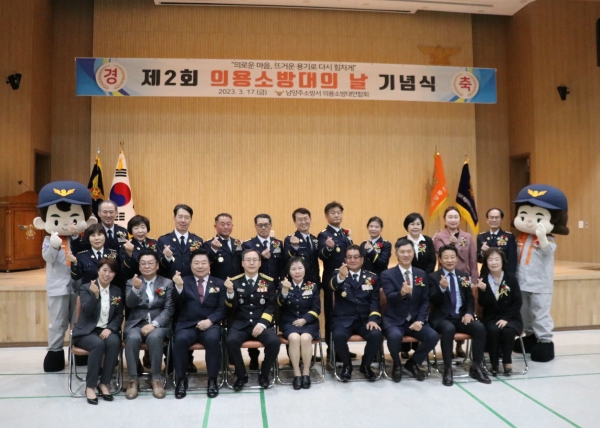 [금요저널] 남양주소방서는 제2회 의용소방대의 날 기념일을 맞이해 ‘의로운 마음, 뜨거운 용기로 다시 힘차게’라는 주제로 의용소방대원들의 숭고한 봉사정신과 희생정신을 되새기는 시간을 가졌다.