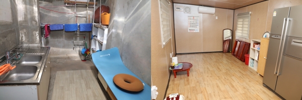 이 휴게시설은 2개동의 컨테이너 가설건축물로 편안하게 휴식을 취할 수 있도록 냉·난방, 수도 등 편의시설이 함께 설치됐다.