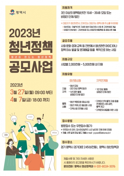 평택시 ‘2023년 청년정책 공모사업’ 참여자 모집