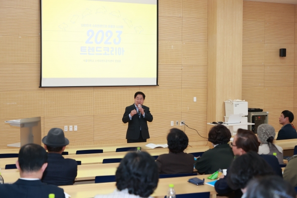 이날 교육에는 직장인, 주부, 자영업자, 문화 예술 및 사회단체 종사자, 법조인 등 사회 각계각층의 시민 50여명이 참여했으며 대한민국 대표 베스트셀러인 ‘트렌드 코리아’ 시리즈의 공동 저자인 권정윤 서울대학교 소비트렌드분석센터 연구위원이 강사로 나서 ‘2023 트렌드 코리아’를 주제로 강의를 펼쳤다.