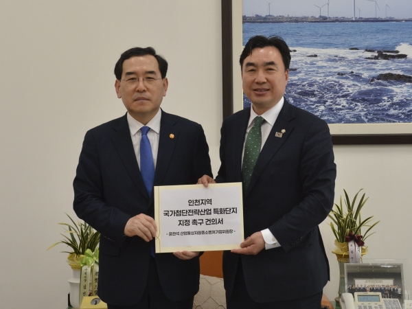 윤관석 위원장, 산업부 장관에게‘인천지역 국가첨단전략산업 특화단지 지정 촉구 건의서’ 전달