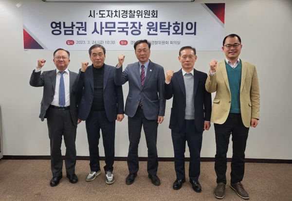 [금요저널] 경상남도자치경찰위원회는 24일 위원회 회의실에서 경남을 포함해 부산, 대구, 울산, 경북 등 영남권 5개 지역 자치경찰위원회 사무국장이 참석한 ‘시·도자치경찰위원회 영남권 사무국장 원탁회의’를 개최했다.