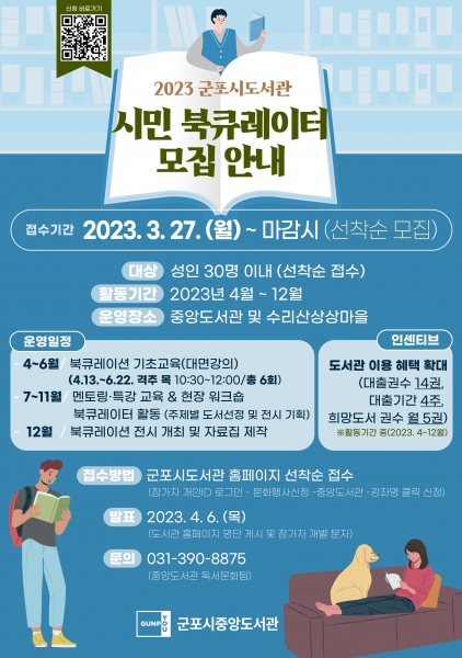[금요저널] 군포시는 3월 27일부터 2023 군포시도서관 시민 북큐레이터 교육생을 모집한다.