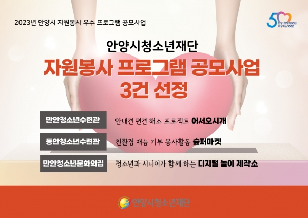 안양시청소년재단, 안양시 자원봉사 프로그램 공모사업 3건 유치