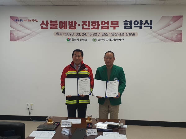 이번 협약은 양산시의 소중한 산림자원을 산불로부터 보호하기 위한 업무협약으로 상호협력체계를 구축하고 유기적으로 산불재해에 선제적으로 대응하기 위해 추진됐다.
