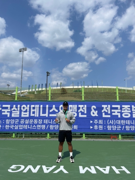 [금요저널] 세종시청 소속 신산희 선수가 지난 26일 경남 함양에서 진행된 ‘제1차 한국실업테니스연맹전 및 전국종별테니스 함양대회’ 남자단식에서 우승을 거머줬다.
