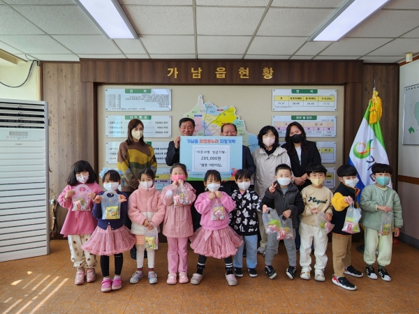 이복환 가남읍장은 “아이들이 어려운 이웃을 생각하는 마음으로 모은 성금에 감동을 받았고 자라나는 새싹들이 사랑을 실천하고 온정을 전달하는 모습이 아름답다”며 “아이들의 고사리 같은 손으로 모은 소중한 성금은 의미 있는 곳에 잘 사용하겠다”고 전했다.