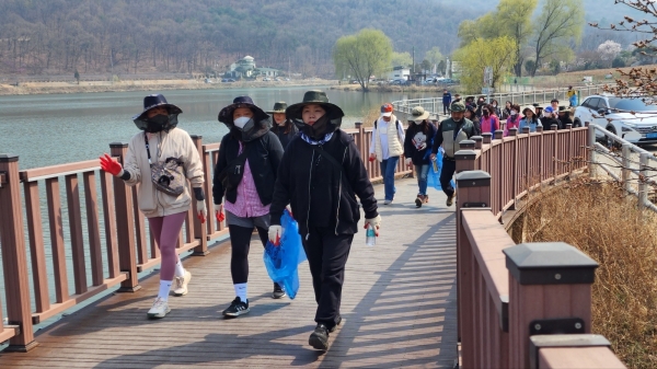 참가자들은 물왕호수부터 연꽃테마파크까지의 물길을 따라 걸으면서 쓰레기를 줍는 환경정화 활동에 동참했다.