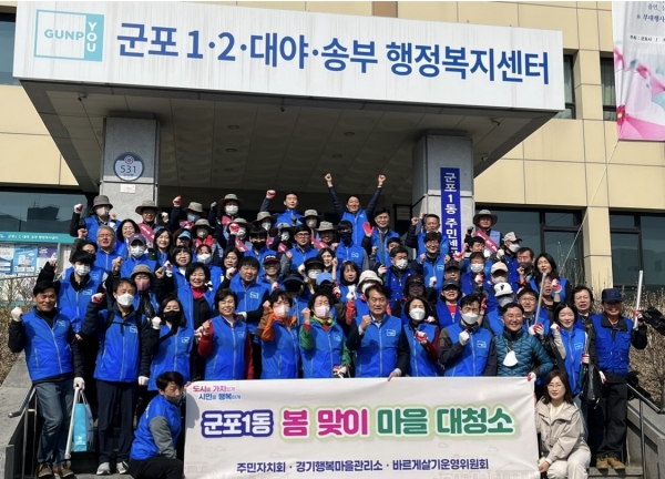 [금요저널] 군포1동 행정복지센터는 지난 29일 군포1동 주민자치회 주관으로 직능단체 및 공무원 등 100여명이 참여해 봄맞이 환경정화활동을 했다.